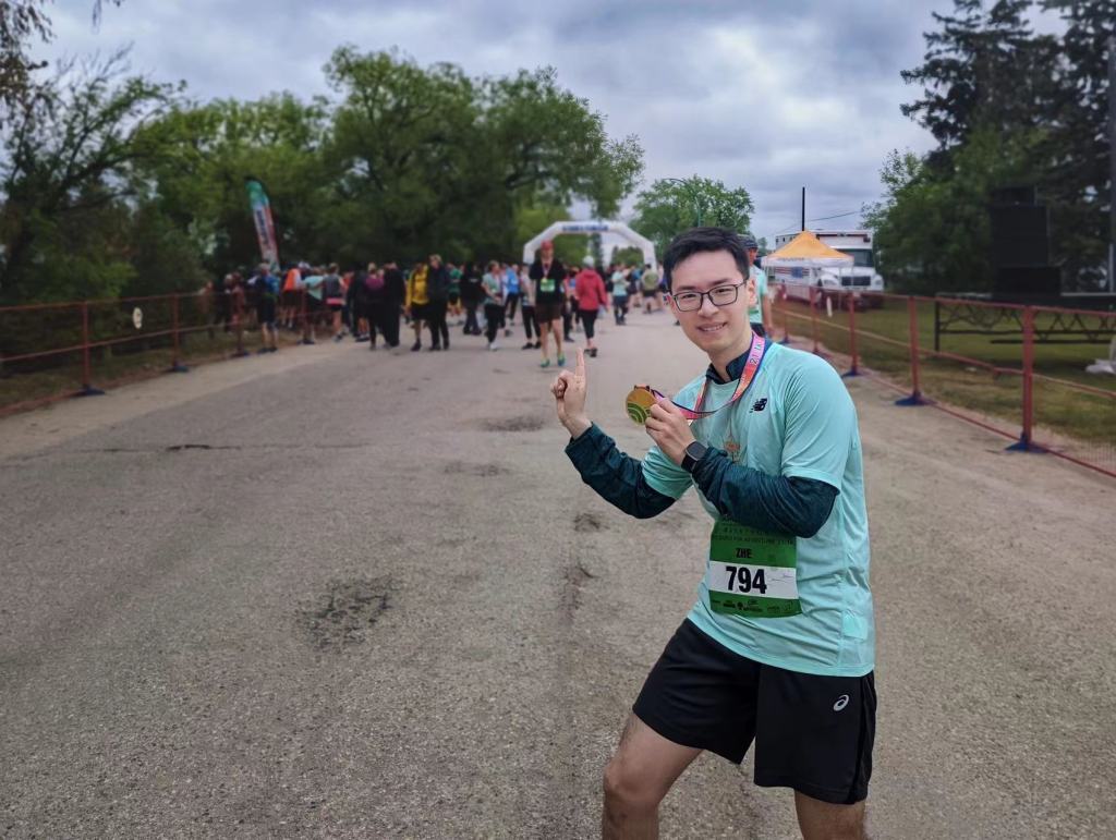 That’s how I started marathon training with my friend at our university gym’s indoor running track. We started with 3-km sessions after 5 pm twice a week. At the same time, my proposal writing was improving, word by word. As spring arrived in early May, I finally finished the proposal, and spring temperatures and snowmelt allowed us to run on trails along the Saskatchewan River. I found I could run non-stop for 16-km, crossing multiple bridges over the rivers. There are six bridges, and it was fun to plan routes from 6 to 20 km by crossing different ones. Each run was new and different, which was so much better than being on an indoor track.